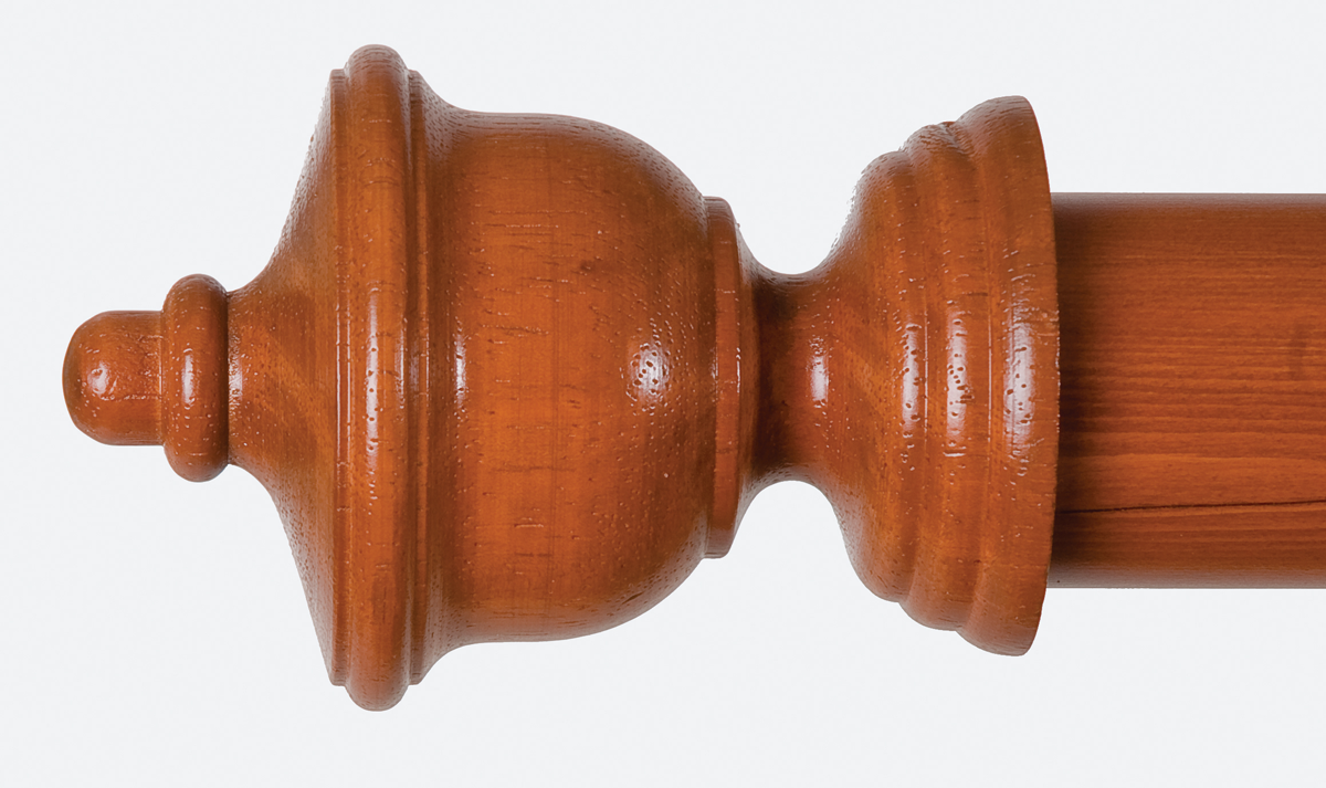 You will appreciate the way our beautiful wood finials show off your special draperies. They can be combined with all the other hardware needed to give you a complete window treatment. Stuart Wood Finial for 3" Wood Drapery Pole Overall Length 6 3/4"