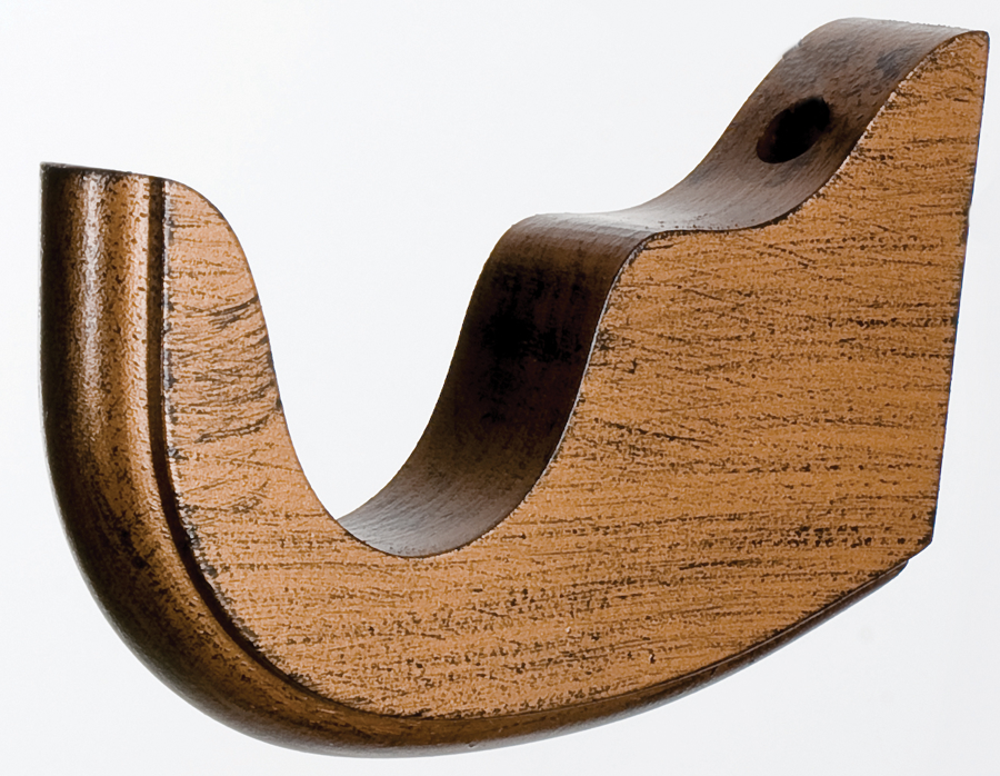 These wood brackets can be painted to match your other drapery pieces for a complete look. Wood Center Support Bracket for 2" Wood Drapery Pole with 4" Return