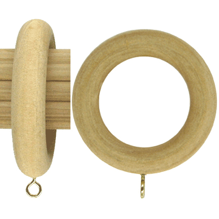 The simple smooth wood ring can be matched to the other parts of your window treatment for a complete look. Smooth Wood Ring I.D. 2 3/8" O.D. 4' for 2" Wood Drapery Pole